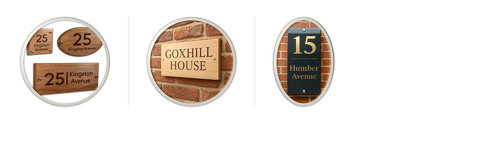We use high-grade materials such as acrylic, aluminium composite, hardwoods, and brass. All materials are chosen for durability, weather resistance, and visual appeal.